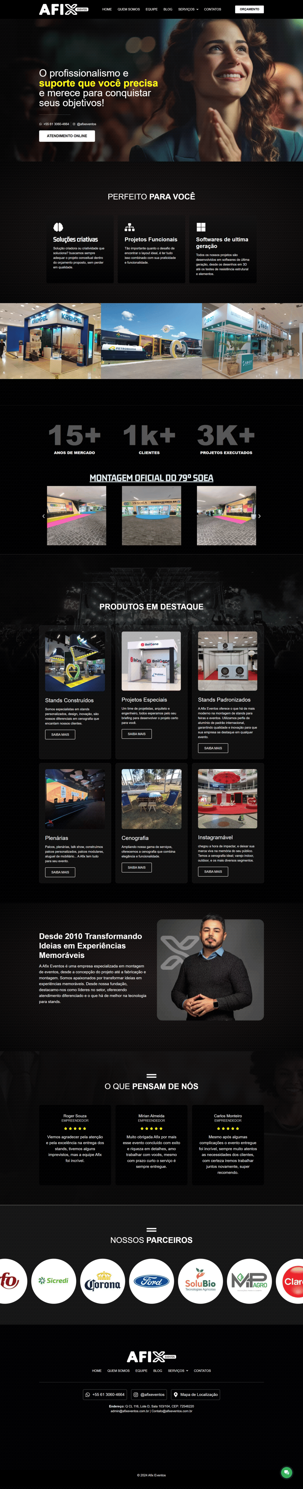O novo site foi desenvolvido para destacar a variedade e a qualidade dos serviços oferecidos pela Afix Eventos, proporcionando uma plataforma intuitiva para que clientes e parceiros possam explorar as soluções criativas e inovadoras da empresa.